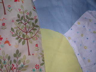 it was my sis-in-laws baby shower today, only a few weeks to go before they have their first child, very exciting! I found a great baby quilt at Savers, gave it a good wash and it looks new. Wrapped this up and added some mushroom ladybird fabric to the wrapping. I also added some bibs that I made today. They are not sure if its a boy or girl, waiting for the surprise, so I used yellows, some blue and prints. I love the print with the trees, it has to be one of my favourite fabrics.