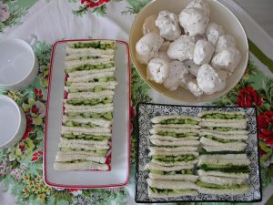 For afternoon tea we are having cucumber sandwiches and forgotten cookies! Yum.