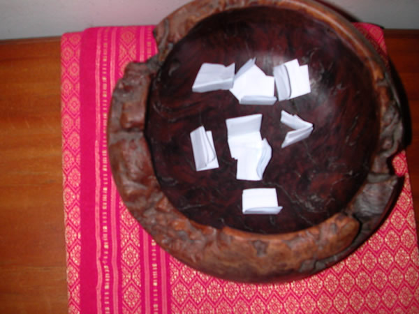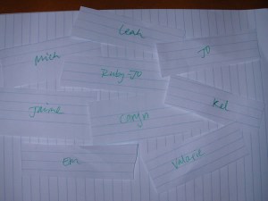 Here is my very scientific method of names on paper drawn from a wooden bowl.