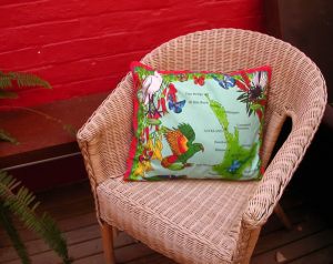 Just whipped up this NZ cushion from a tea towel as my holiday souvenir. Love the bright colours. I used an old long zip and a current couch cushion as the filler which has about 4 previous covers still on it . . I think I need to buy some more inners.