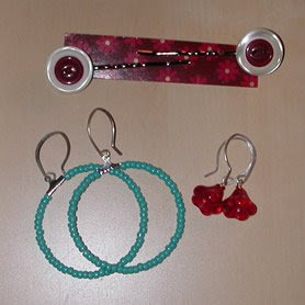 yesterday when i got home there was a lovely little parcel in the post from michvanetta of some earrings I bought through madeit as a treat to myself. I love her simple styles, the colours and the great photos. And all beautifully wrapped with some lovely button hairclips thrown in. Thank you!!