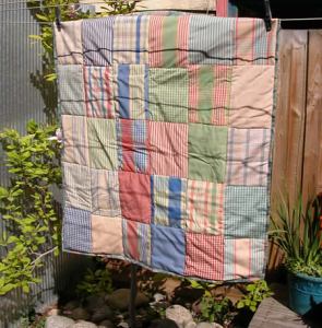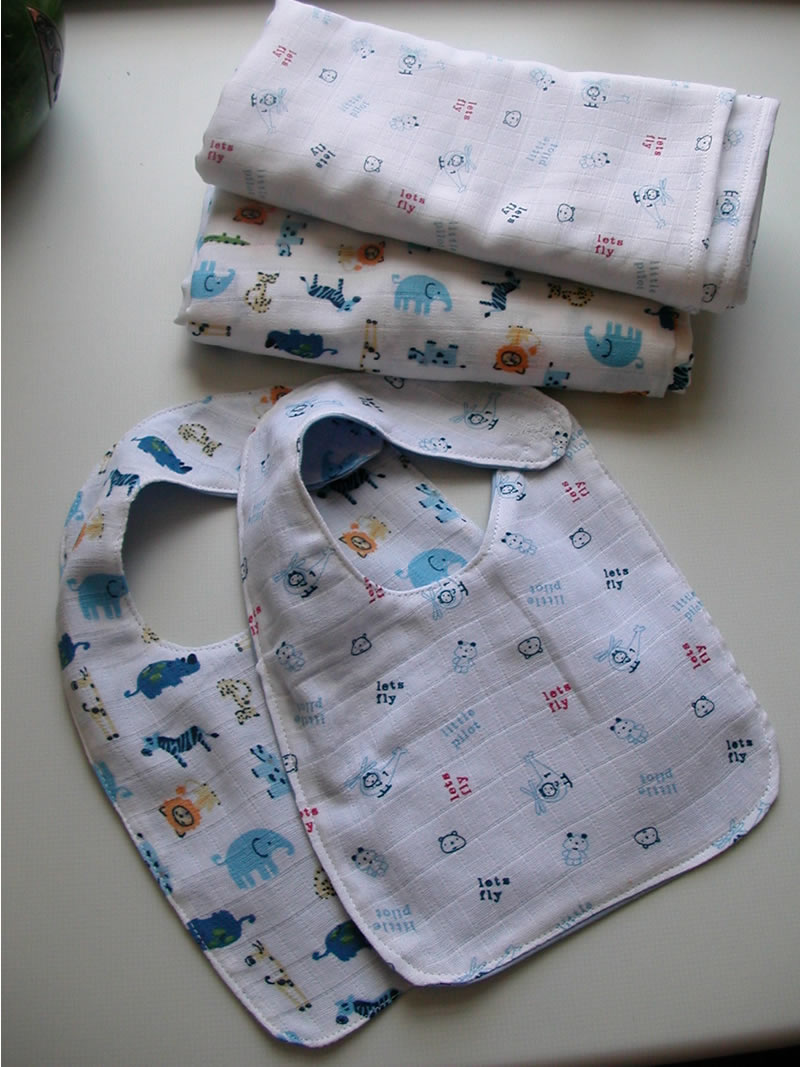 I have a baby shower coming up on the weekend and thought I’d make these muslin wraps and matching bibs. The bibs have a soft blue on the back. The soon-to-be new mum knows they are having a boy, exciting times!