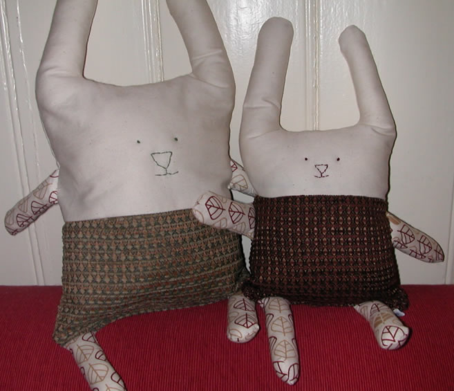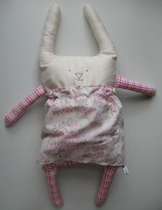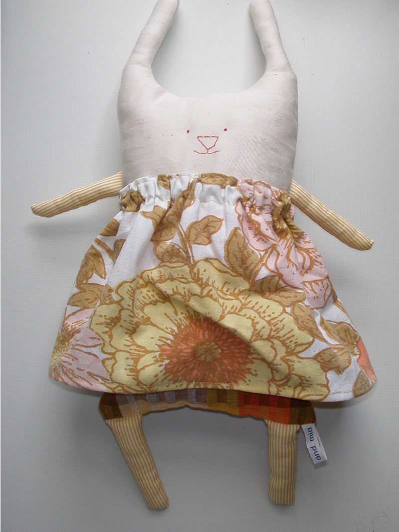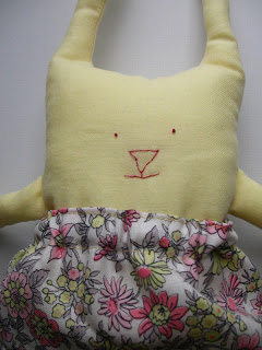Meet Petunia in pink and Rose the rabbit, the latest additions to the rabbit family. Rose is a bit more delicate than the boys, and I love the material of her skirt which is from a vintage sheet I found. Petunia’s skirt is also from a vintage sheet, one my friend found in an Op Shop and bought for me. Thanks Soph!