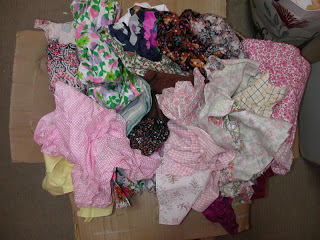 My lovely Granny let me rummage through three boxes of goodies to come up with my own box of fabric scraps. I recognise lots of these materials from childhood pyjama’s, a skirt of mum’s, a smocked dress Granny made for me and her current bedspread made of yo-yo’s. Its a real treasure trove for making bunnies and other inspiring treats, like little Custard here . .