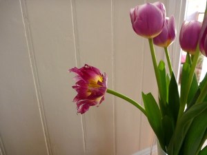 see evidence! I got up this morning to tulip destruction, and then sprung the cat contemplating her next victim.. i don’t know why she likes eating tulips out of all the flowers.