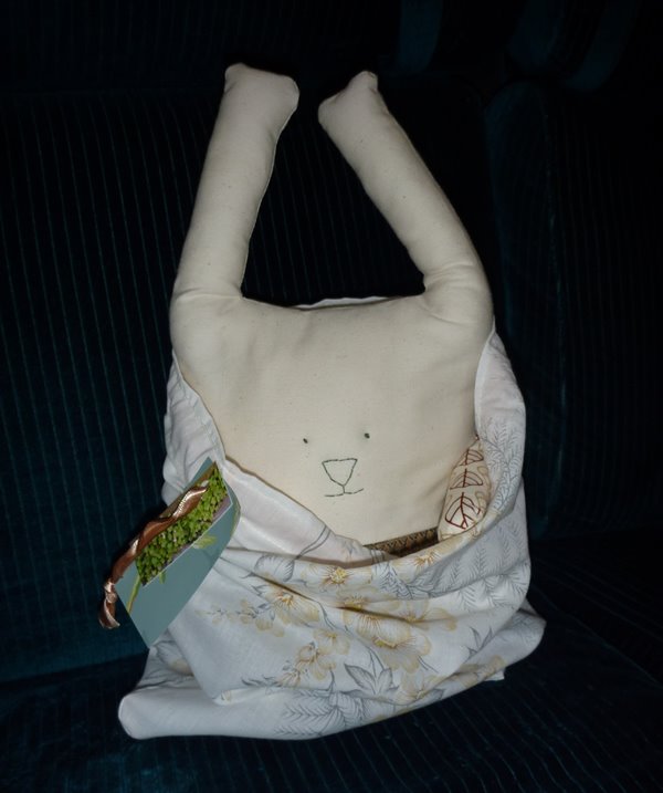 in preparation for the winner of today’s Sunday giveaway on Jo’s blog, I have popped this little softie bunny into its fabric bag and wrapped him and the rosebud purse up together. I am looking forward to posting these to a lucky winner!