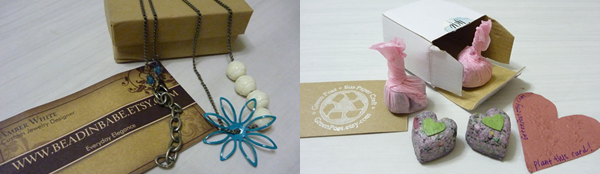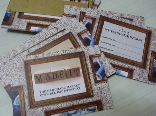 this weekend i returned from bendigo to find some treats in the mail . . a gorgeous necklace from Amber White of beadinbabe and some great recycled paper fridge magnets from Green Post. great packaging that included a thank you love heart that must have seeds in it as it says to plant the card! cool. Plus my madeit cards have arrived! Looking forward to using these.